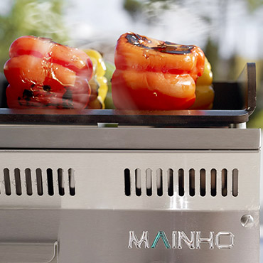Performante, Écologique et Économique, appréciées par les cuisiniers équipés de food-trucks, les chefs étoilés, les grillardins amateurs, la Plancha NOVO CROM & NOVO SNACK MAINHO est constituée d'une plaque de cuisson de 15 mm, d'un ou de deux tiroirs en inox pour récupérer les jus de cuisson et d'un bloc bruleur comprenant 1, 2 ou 3 rampes de gaz très puissantes.