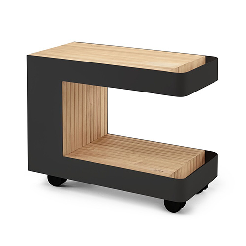 Dessertes & Chariots en bois Exotique et Acacia sur roues avec freins, équipés de rangements et de plateau en inox