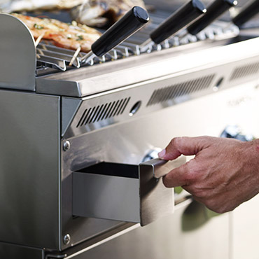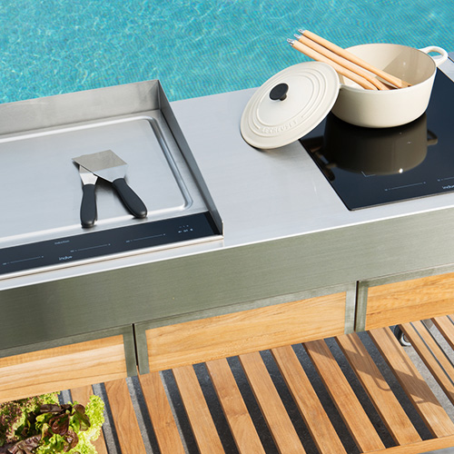 Partenaire incontournable des professionnels du show cooking, en collaboration avec nos industriels, nous travaillons avec soin et passion, sur l’évolution d’une politique audacieuse et inventive (planchas chrome dur, chariots et dessertes haut de gamme, ustensiles et mobiliers innovants) et à l’agencement spécifique de cuisines d’extérieur.