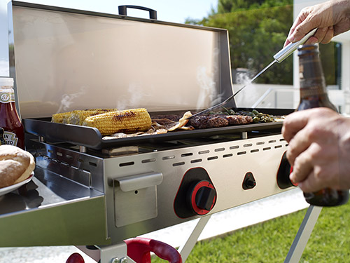 Performante, Écologique et Économique, appréciées par les cuisiniers équipés de food-trucks, les chefs étoilés, les grillardins amateurs, la Plancha NOVO CROM & NOVO SNACK MAINHO est constituée d'une plaque de cuisson de 15 mm, d'un ou de deux tiroirs en inox pour récupérer les jus de cuisson et d'un bloc bruleur comprenant 1, 2 ou 3 rampes de gaz très puissantes.